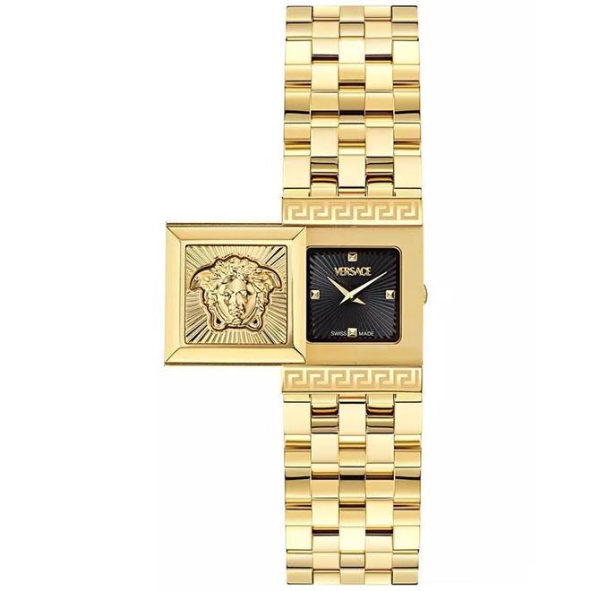 范思哲(VERSACE)女士方形离子镀金表带石英防水腕表奢品名表xmm Gold ONE SIZE