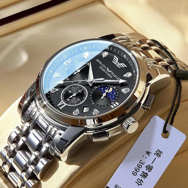 当BINKADA黑武士机械表扣上手腕的刹那,你会理解为什么男人总把腕表称为第二张名片。这款采用全自动机芯的时计,表壳经过316L精钢八层电镀处理,呈现出比普通不锈钢更深邃的黑色光泽,就像被夜色浸透的钨钢。表盘上立体的罗马数字时标与剑形指针形成鲜明对比,6点钟位置的镂空视窗里,红宝石轴承与擒纵机构正在进行精密的机械芭蕾