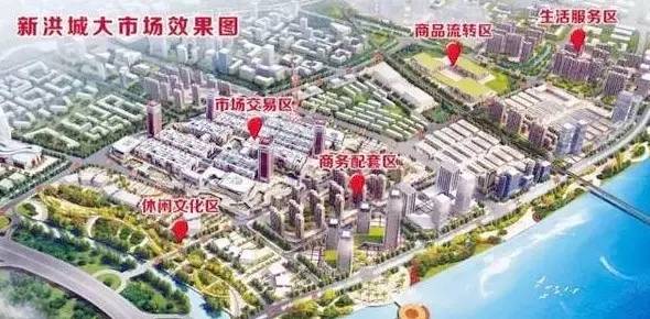 根据规划,新洪城大市场依托地方产业经济发展和城市发展的需要,以主题批发为核心,集赣派文化、创意产业、电子商务、产业集聚、品牌孵化、企业总部、国际贸易、现代流通、休闲娱乐、旅游观光、生活居住等城市服务功能为一体。
